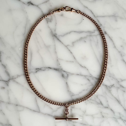 9ct Gold Antique Watch Chain T-Bar Necklace Anna
