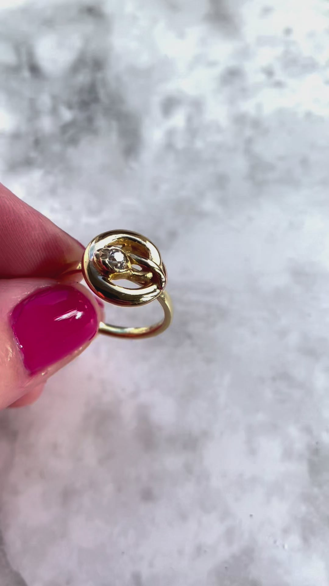 Victorian 18k Gold Ouroboros Snake Ring Featuring a Stunning Old Cushion Cut Diamond Antique