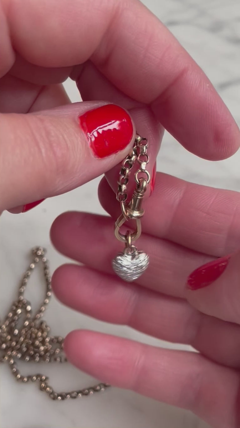9k Gold Antique Belcher Watch Chain Necklace With an 18k White Gold and Diamond Pavé Heart Charm