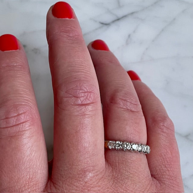 Elegant Vintage Half Eternity Ring 18k Gold and Diamonds Size UK O / USA 7.25